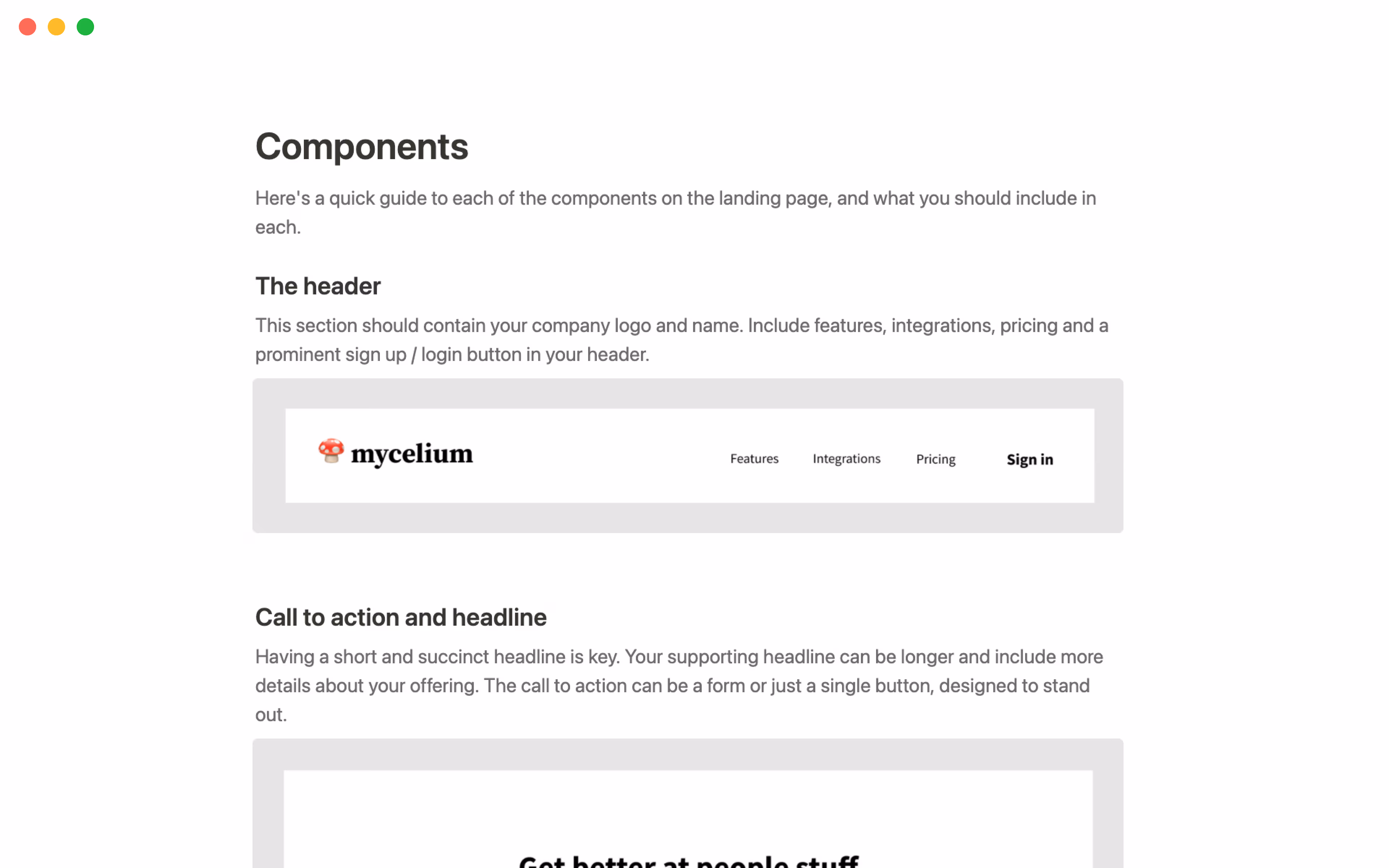 Getting a website up and running can take a lot of resources and time you don't have as an early-stage startup. But testing your go-to-market messaging early and often is something you should be doing from day one. Merci's landing page template breaks down each section with advice for how to tell a cohesive, compelling story.